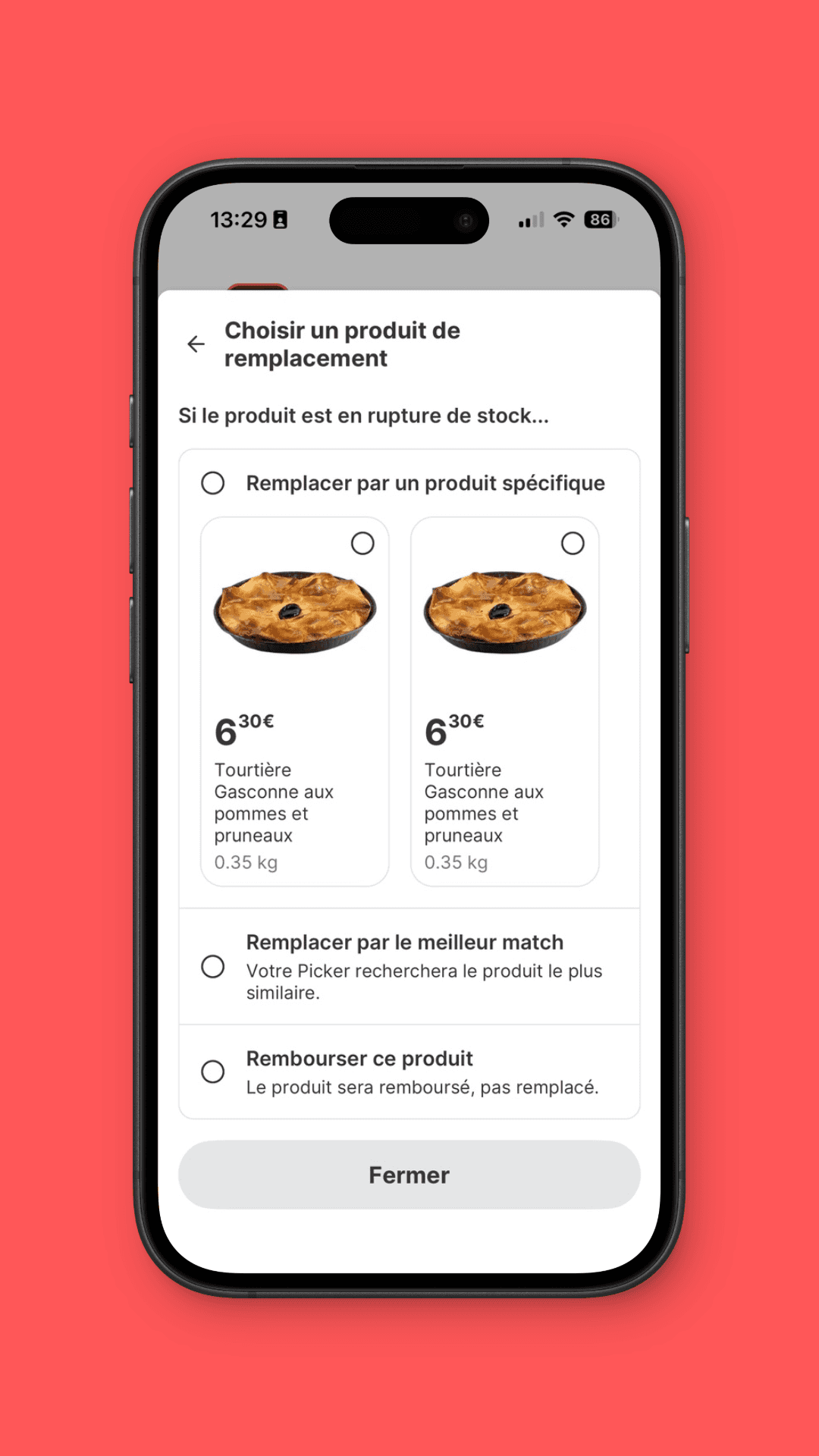 Sélectionnez directement dans votre panier le produit de substitution